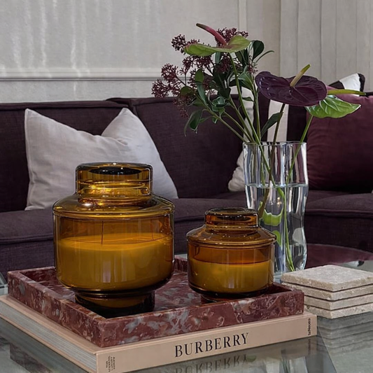 Cam Kapaklı Amber Dekoratif Mum – Lüks Ev Aksesuarı