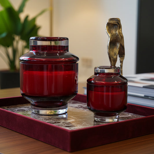 Bordo Cam Dekoratif Mum – Lüks Ev Aksesuarı